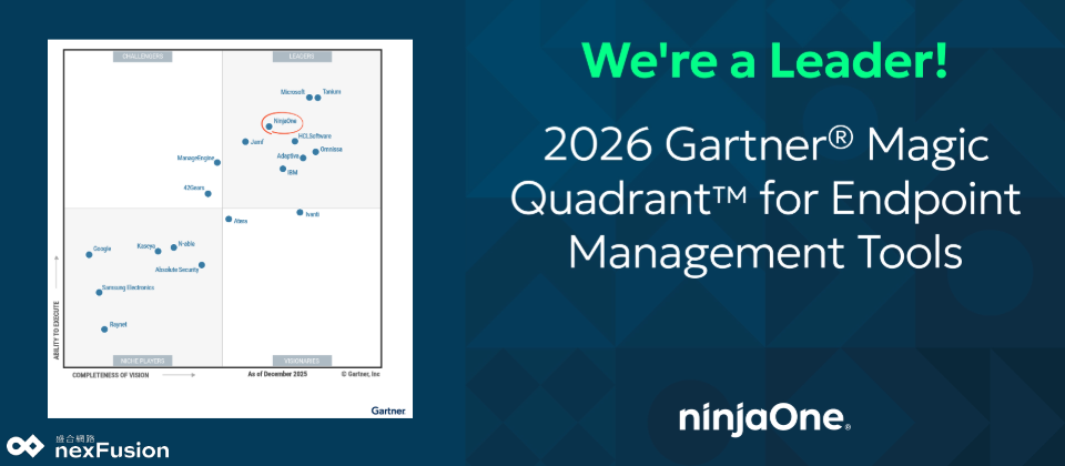 我們與有榮焉地宣布,ninjaOne在最新發佈的《2026 Gartner® 端點管理工具魔力象限》(Gartner® Magic Quadrant™ for Endpoint Management Tools)報告中,獲評為領導者(Leader)。