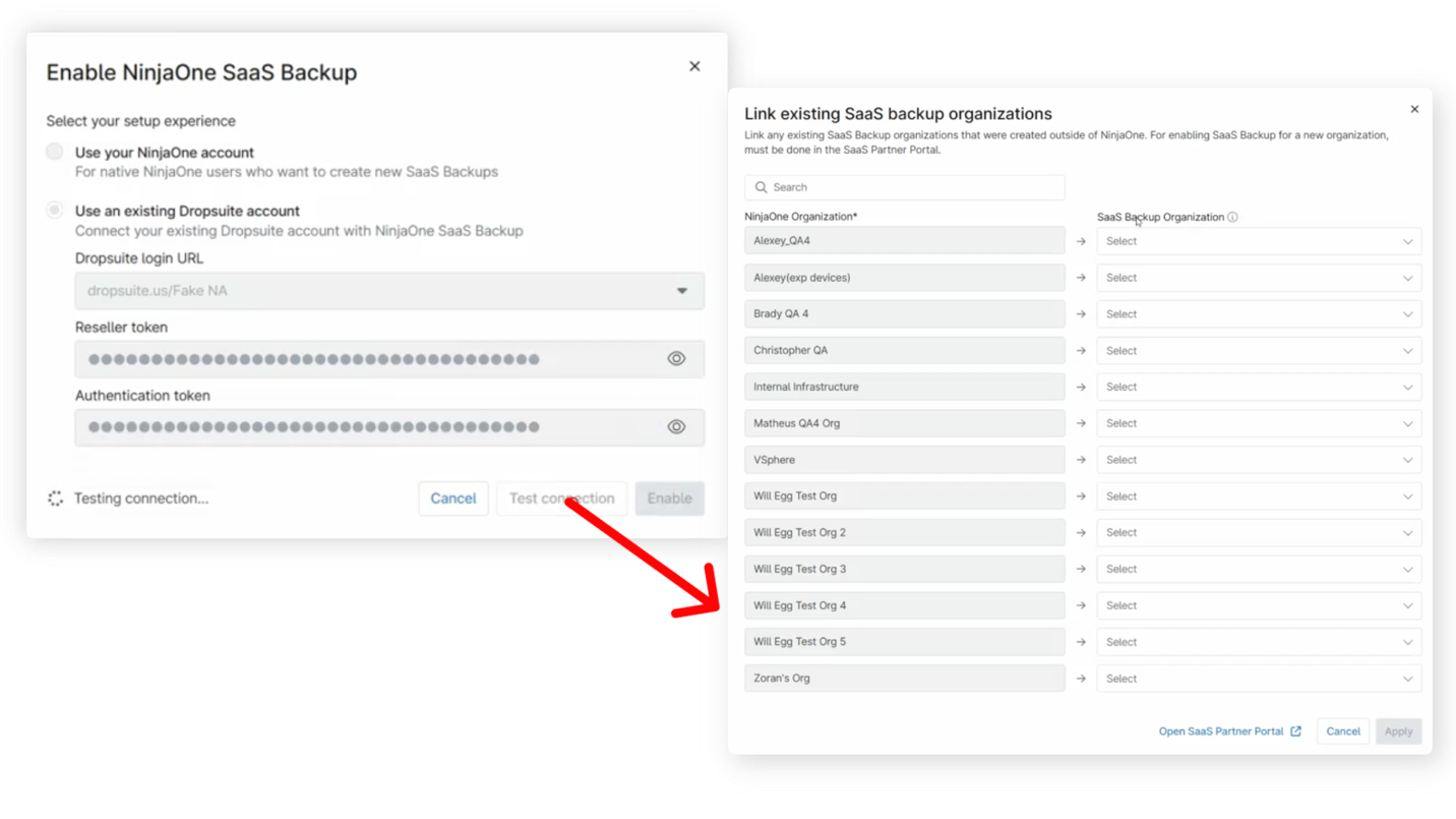 BYO Dropsuite: 現有的Dropsuite客戶可以直接將帳號與ninjaOne串接,保留所有備份配置與購買管道,實現統一的SaaS備份管理。