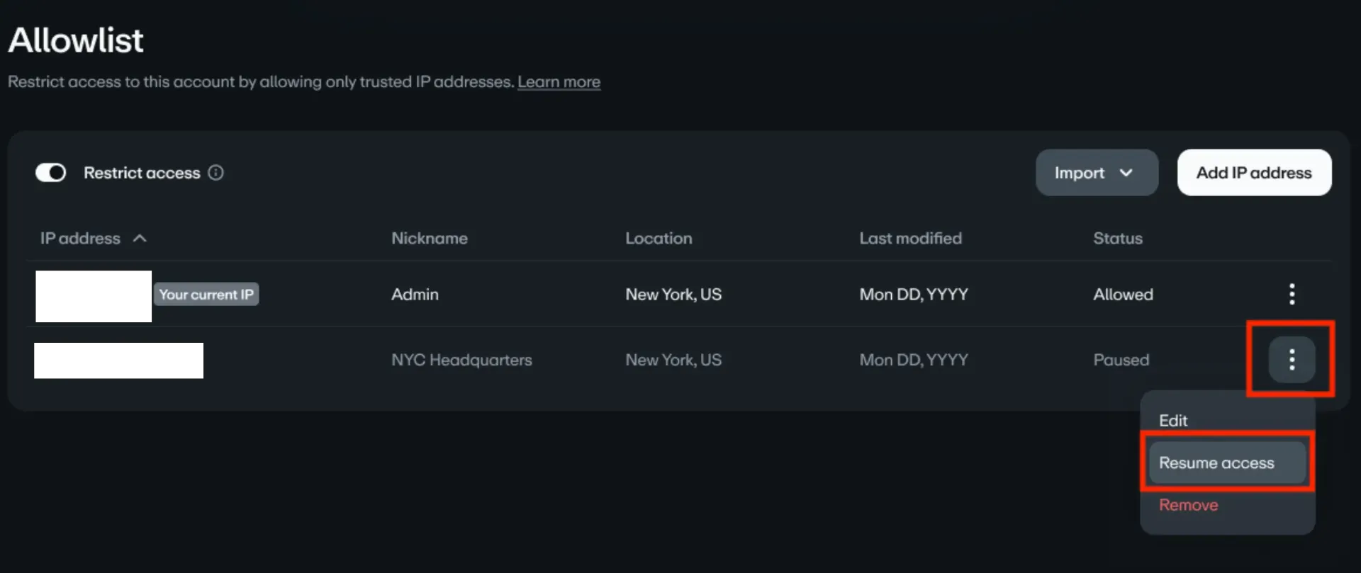 - 支援IP白名單,限制哪些 IP 地址可管理帳號/內容,特別適合使用VPN或SD-WAN的組織